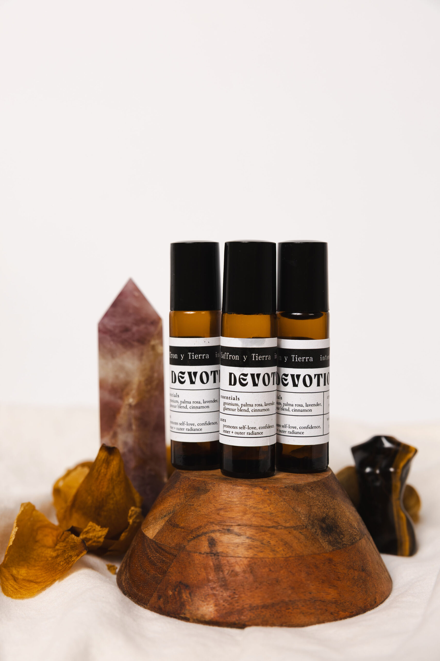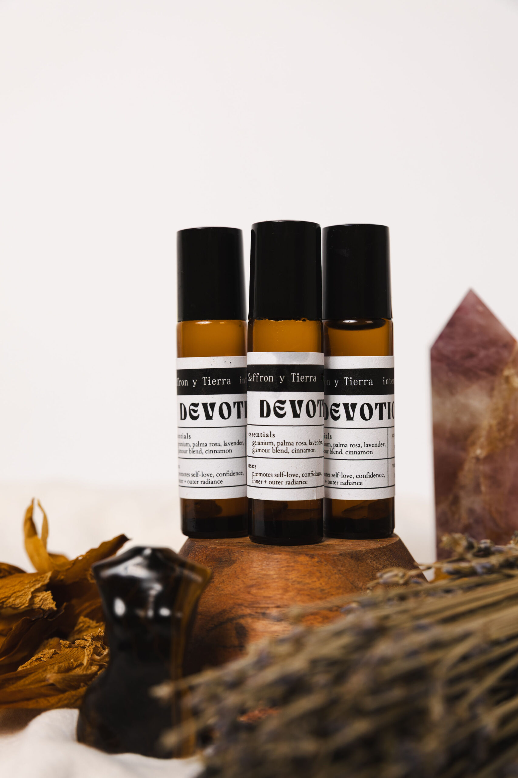Devotion oil is crafted for the ritual of choosing yourself — again and again. this luxurious skin-friendly blend features sweet almond oil infused with lavender, palmarosa, geranium, cinnamon, and your signature glamour blend for energetic beauty and sensual allure. very much giving spa vibes.