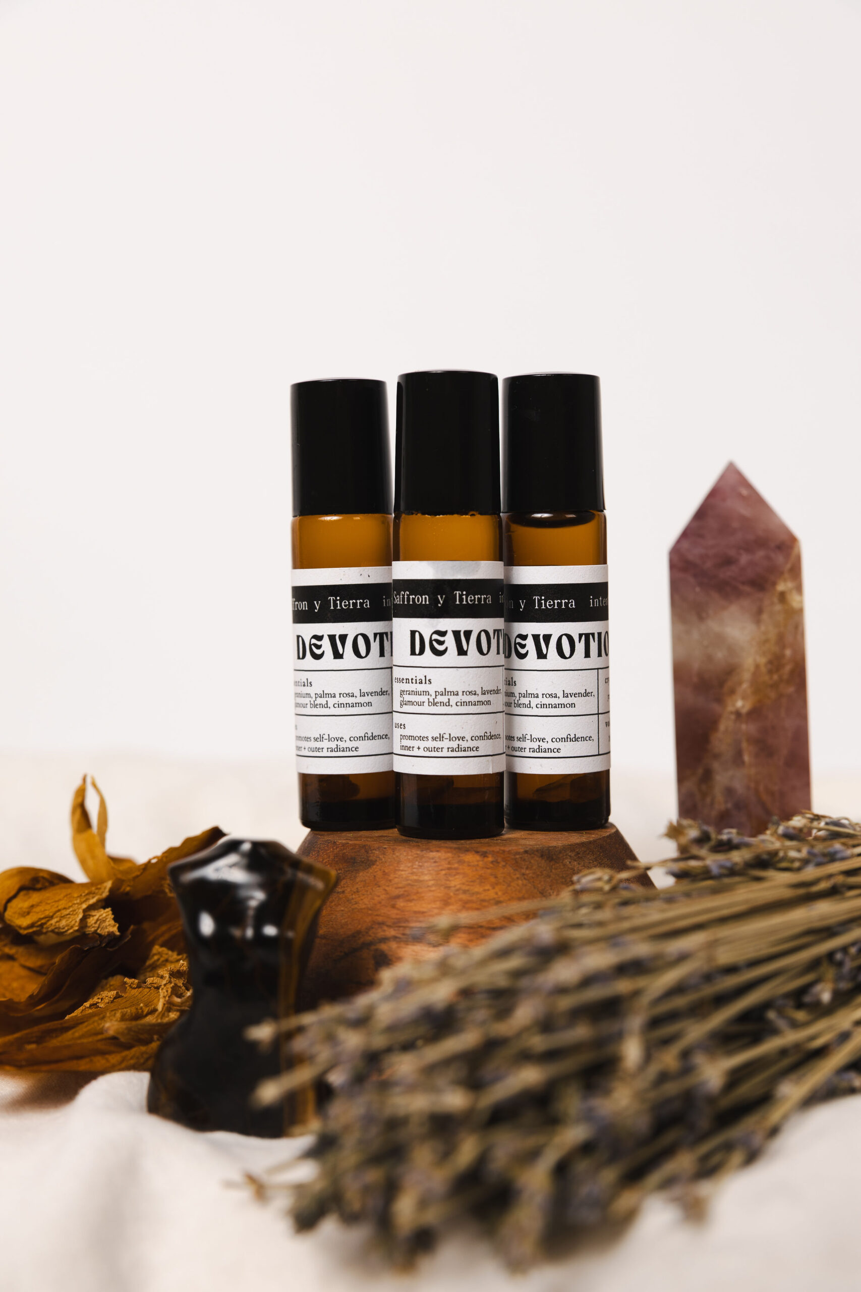 geranium – palma rosa – lavender – cinnamon – glamour oil blend – rose quartz – cold pressed sweet almond oil
